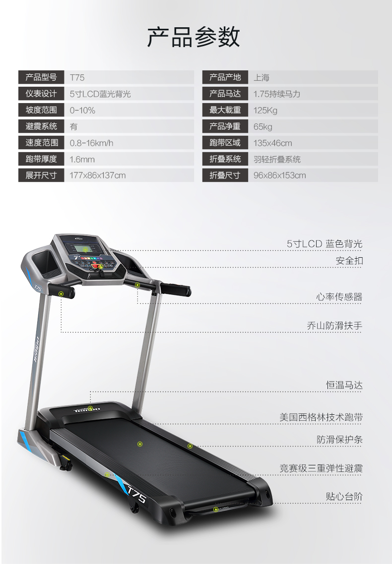 喬山跑步機(jī)家用款新品T75電動(dòng)靜音可折疊健身器材 運(yùn)動(dòng)器材 家用暢跑款