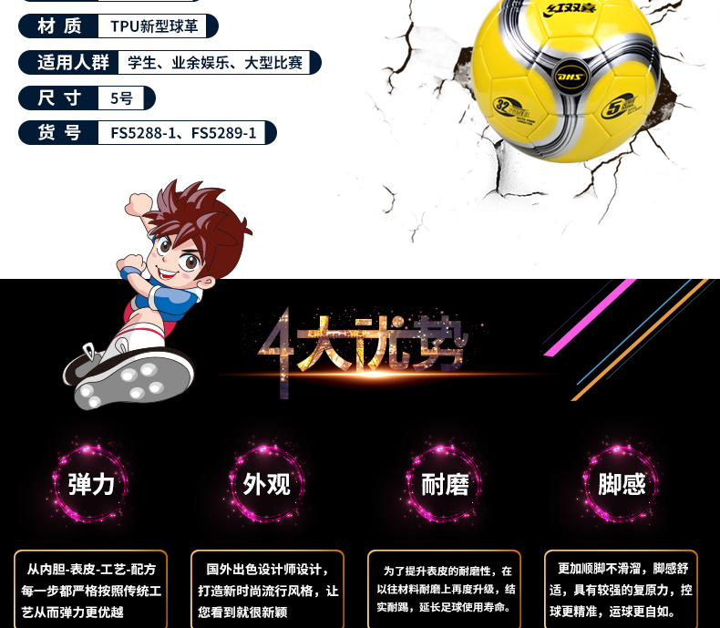 紅雙喜足球FS5288-1 訓(xùn)練比賽用品牌新型革材質(zhì)耐磨5號(hào)成人足球FS5288-1