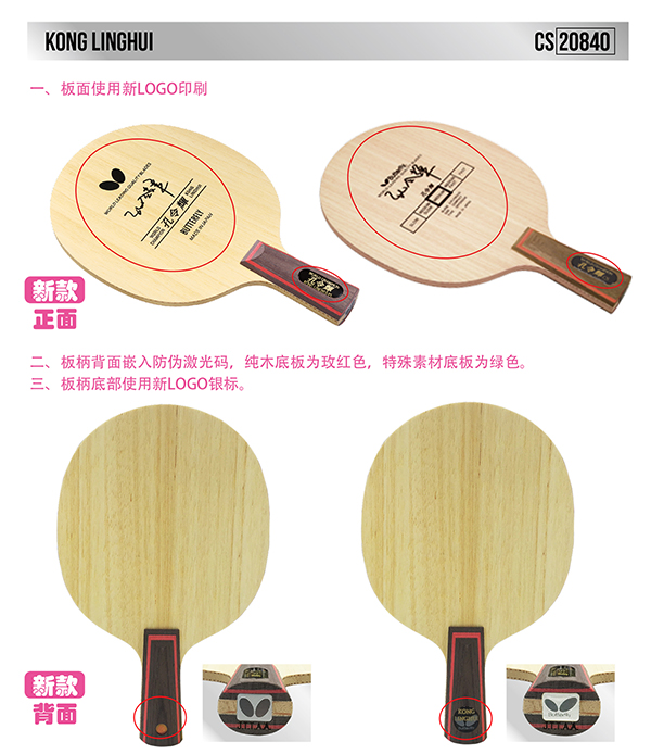 Butterfly蝴蝶20840 孔令輝乒乓底板-直拍(Butterfly Kong Linghui)