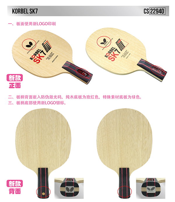 Butterfly蝴蝶22940 新科貝爾SK7(KORBEL)乒乓球底板 進(jìn)攻型七層合板