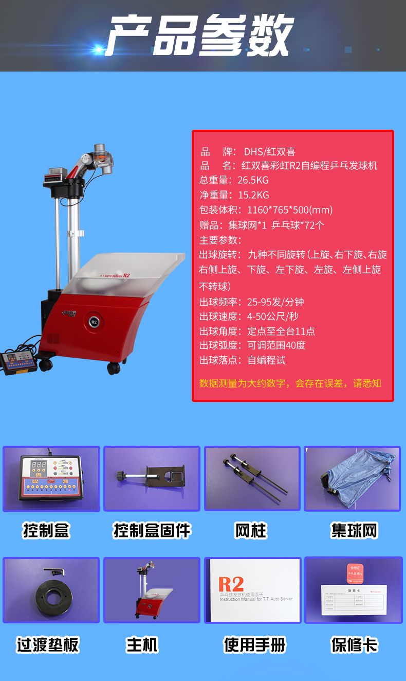 紅雙喜(DHS) R2自編程落地式專業(yè)乒乓球發(fā)球機