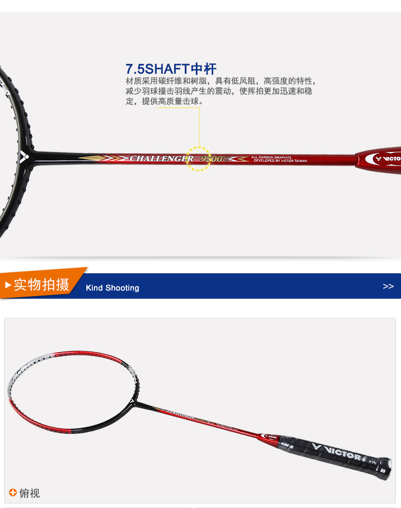VICTOR威克多羽毛球拍單拍全碳素業(yè)余初級(jí)進(jìn)攻挑戰(zhàn)者CHA9500