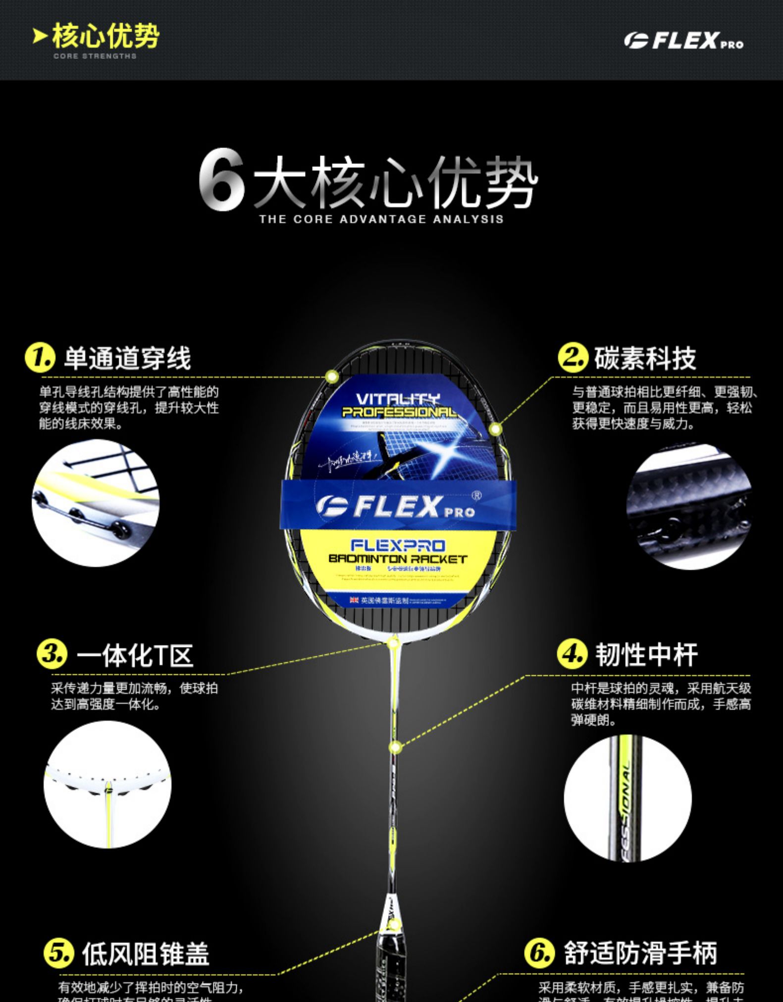 佛雷斯FLEX 羽毛球拍 R系列 全碳素破風(fēng)拍框 攻守平衡型