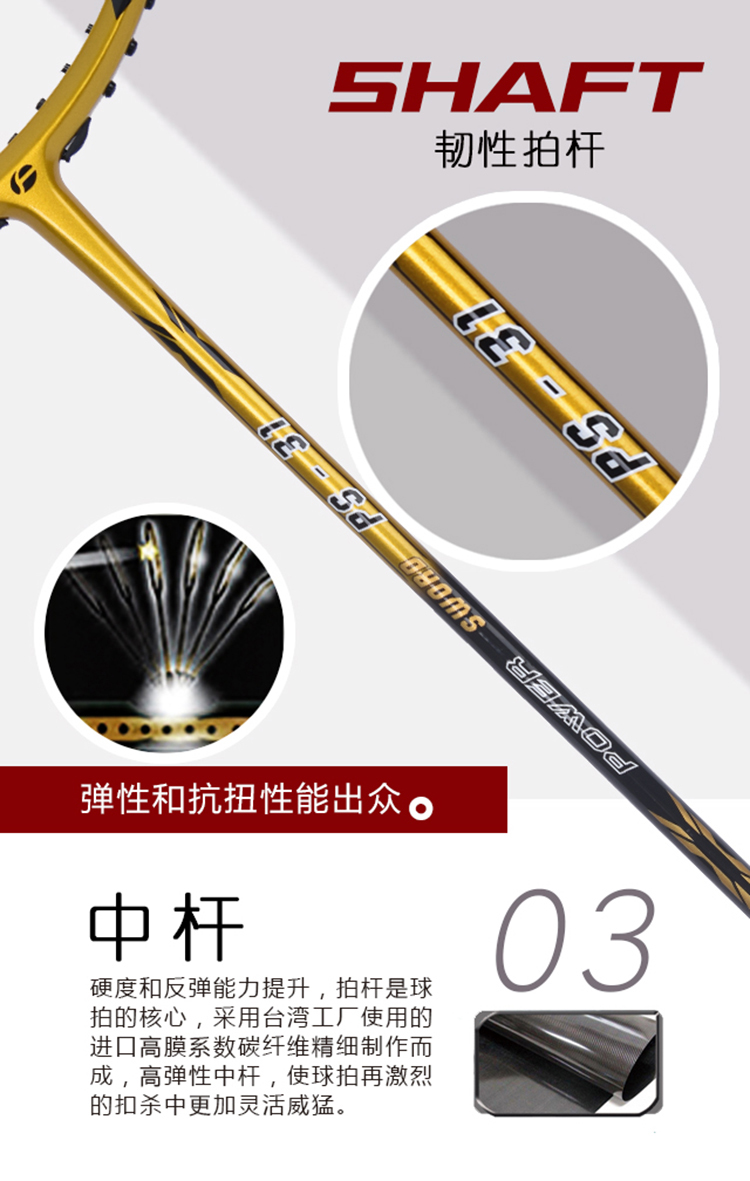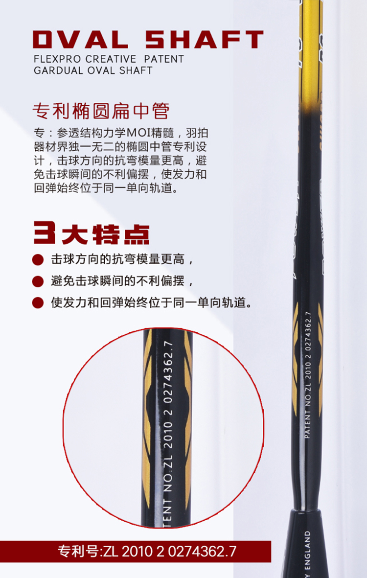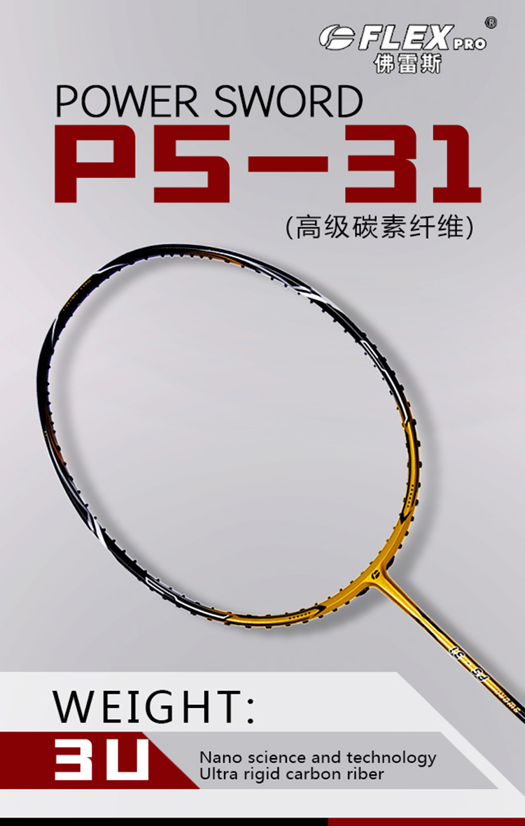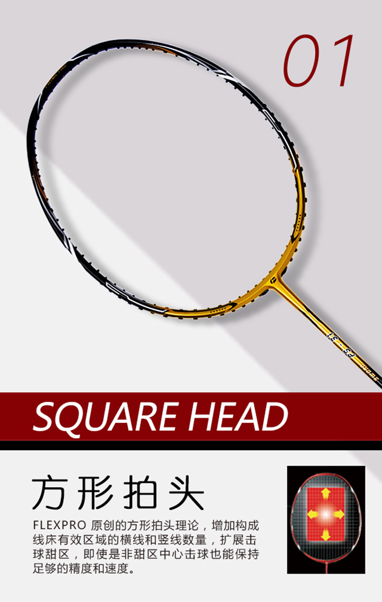 佛雷斯FLEX初學(xué)者初中級(jí)進(jìn)攻型速度型破風(fēng)拍框金銀色羽毛球拍