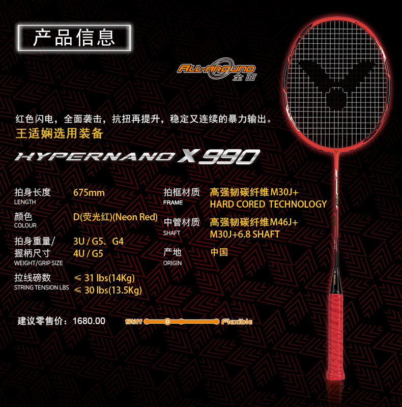 VICTOR威克多羽毛球拍單拍碳纖維專業(yè)比賽王適嫻指定球拍HX-990