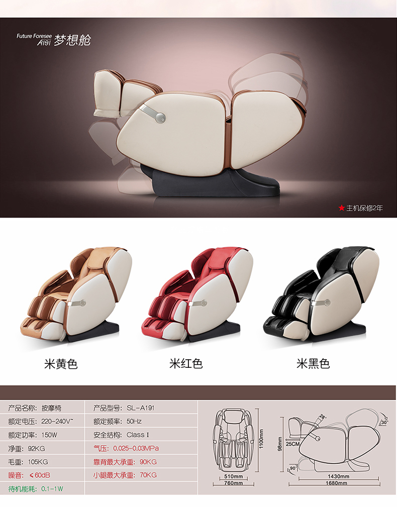 iRest艾力斯特A191按摩椅家用太空艙全自動(dòng)全身揉捏多功能沙發(fā)椅