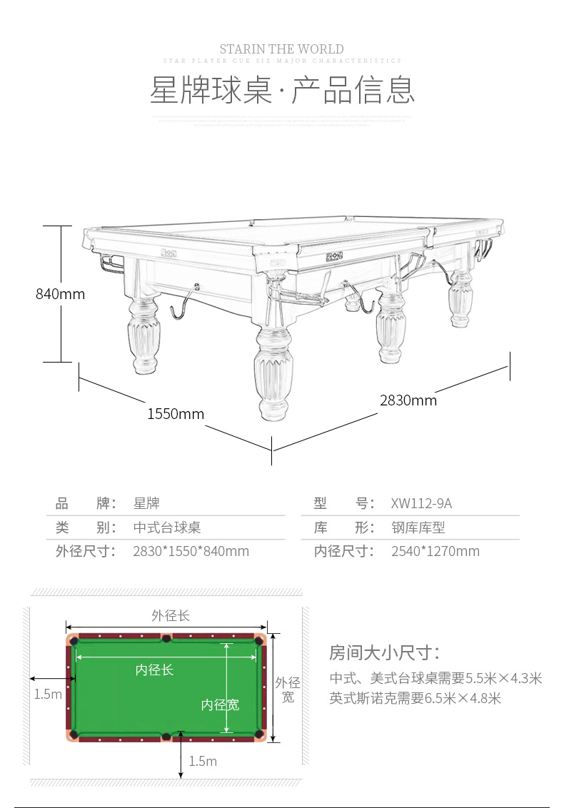 星牌 臺(tái)球桌 XW110-9A中式世錦賽指定用臺(tái)