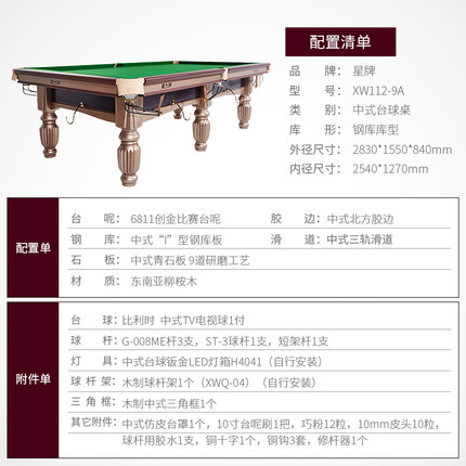 星牌 臺(tái)球桌 XW112-9A中式球臺(tái)