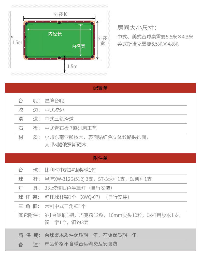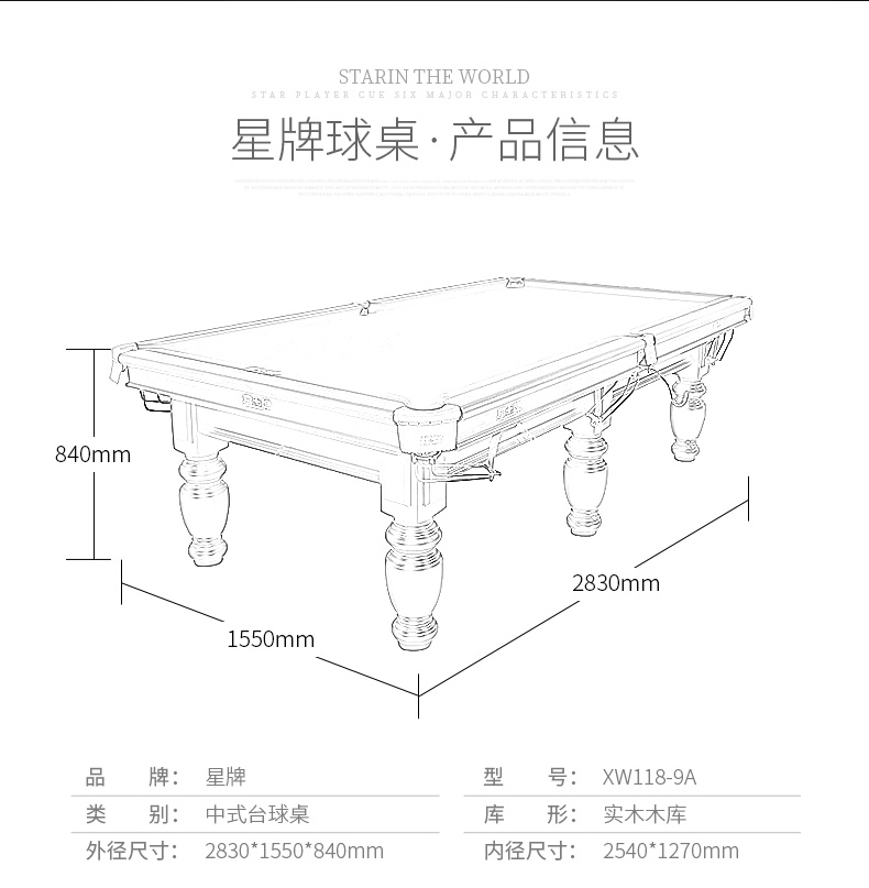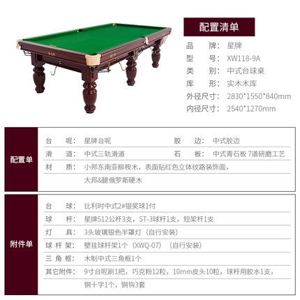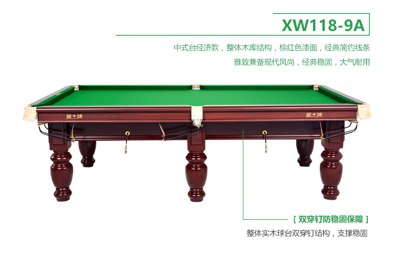 星牌 臺(tái)球桌 XW118-9A中式黑八球臺(tái)