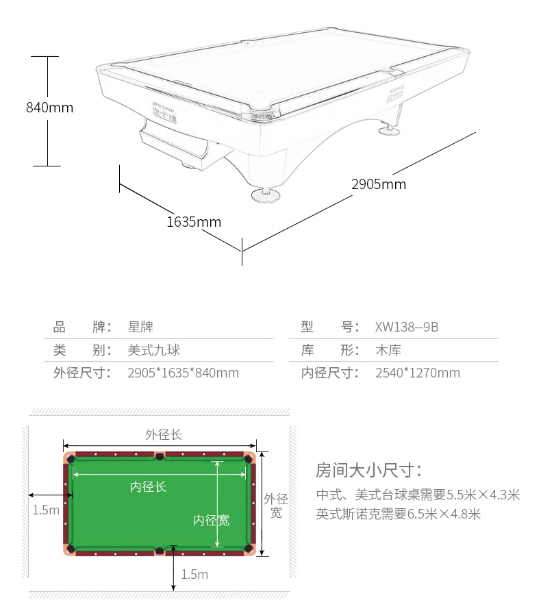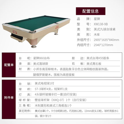 星牌 臺球桌 XW136-9B美式九球公開賽用臺
