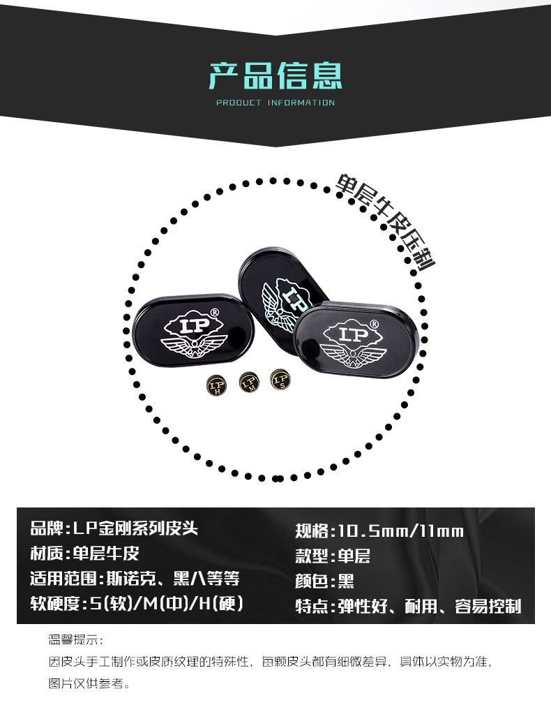 LP魔力金剛皮頭臺球桿皮頭斯諾克桌球桿槍頭黑八桿頭10mm臺球用品